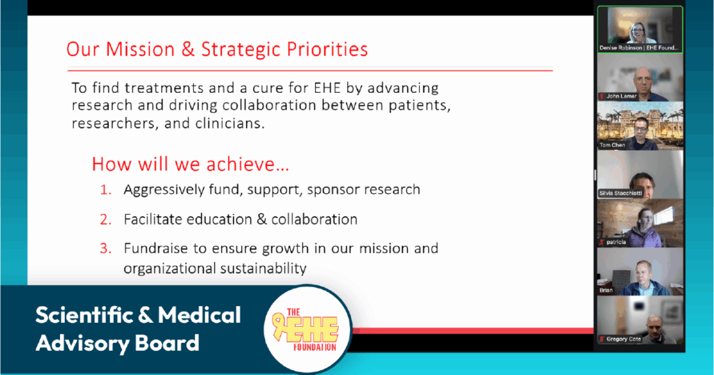 Accelerating Research That Improves Care. Our highest priority is to accelerate the discovery of effective treatments, and ultimately a cure for EHE. This means advancing basic and translational science, strengthening global research collaboration, and improving clinical care through shared knowledge and data. Progress in EHE depends on coordinated effort, sustained investment, and a research-ready community working together across borders and disciplines.